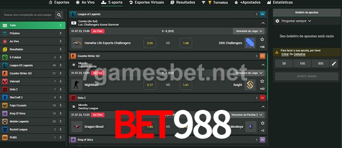 O bet988 oferece uma grande seleção de opções de apostas em e-sports com probabilidades competitivas